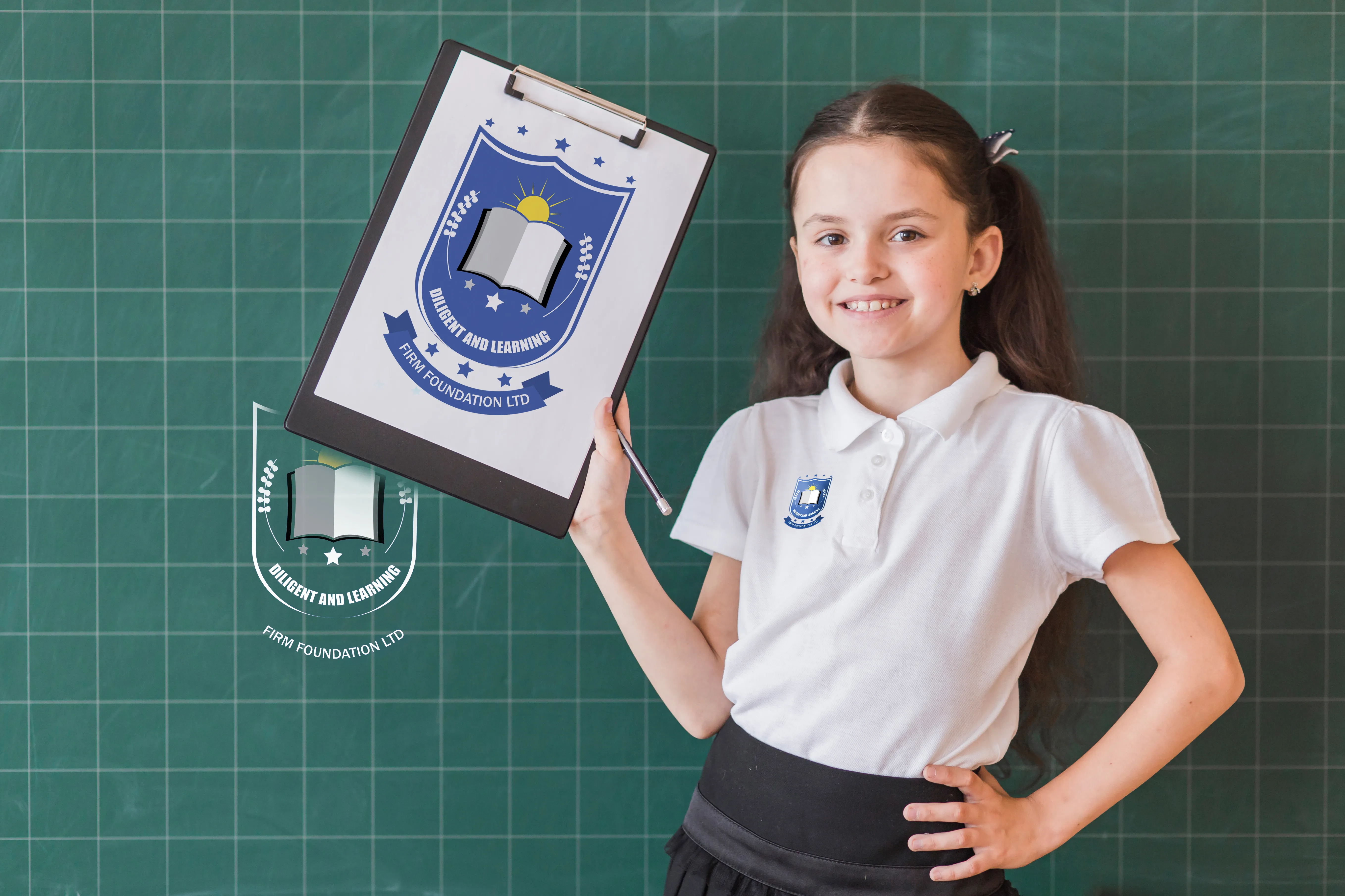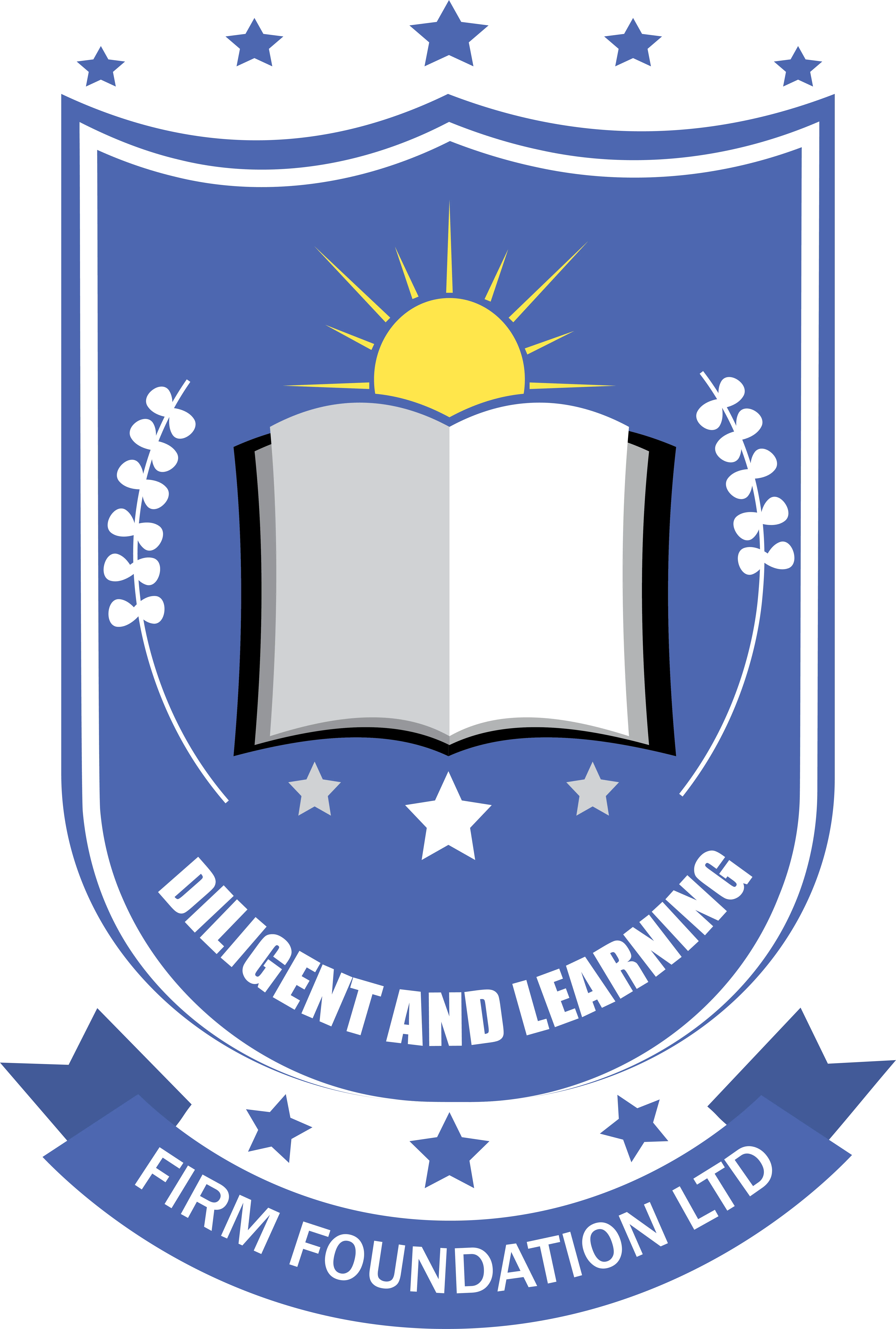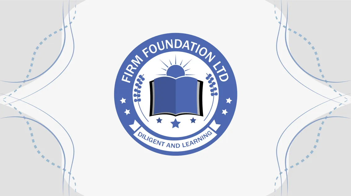 Badge-style logo design for educational organization 'Firm Foundation', suitable for school uniforms, books, and more.